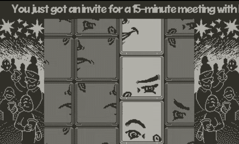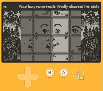 GOAL: Line up the tiles in the center to form a facial expression that corresponds to the prompt at the top of the screen