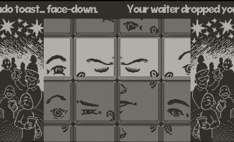 Use the crank to move through comic, and move the face tiles in-game